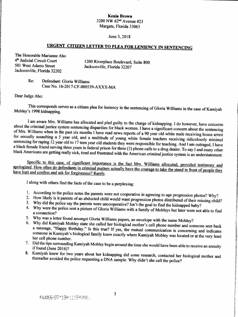 Letter To Plea For Leniency In Sentencing Pdf